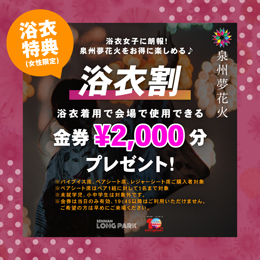 浴衣着用で会場で使用できる金券2,000円分プレゼント!